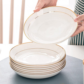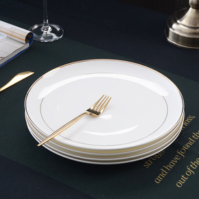 10个菜盘金边大气8英寸骨瓷饭盘骨质瓷陶瓷深菜盘子...