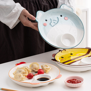 创意卡通陶瓷饺子盘子带醋碟托盘家用餐具菜盘网红盘子...