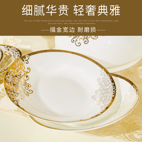 碗碟套装家用描金边菜盘饭盘陶瓷餐具简约欧式米饭碗盘...