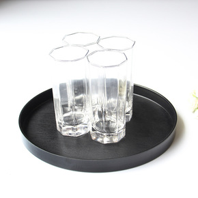 欧式大托盘水杯盘茶盘家用木纹圆形酒店托盘零食点心盘...