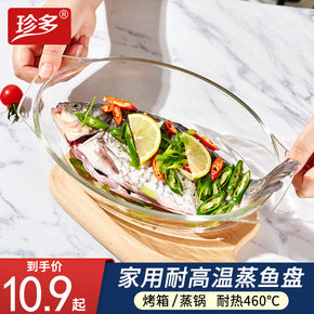 耐热玻璃烤盘透明大号微波炉烤箱家用蒸鱼盘子餐具加热...