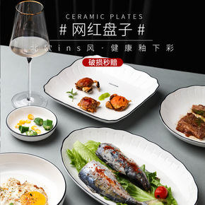 ins风北欧网红盘子菜盘套装家用味碟新款蒸鱼盘子创...