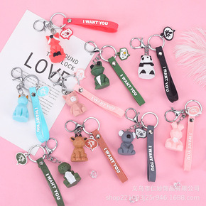 卡通切面几何钥匙链恐龙韩国熊猫钥匙挂件可爱创意情侣...