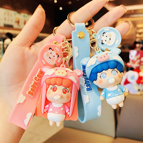 创意时尚卡通硅胶奶嘴牛宝宝钥匙扣汽车情侣挂饰钥匙链...