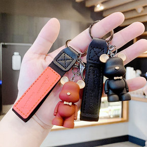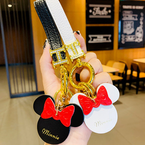 个性时尚皮革米妮汽车钥匙扣挂件女士精致卡通可爱钥匙...