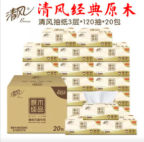 清风抽纸原木120抽整箱20包家用餐巾纸卫生纸面纸...