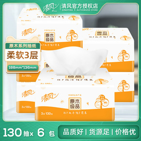 清风抽纸巾原木3层130抽6包面巾纸餐巾纸一提卫生...