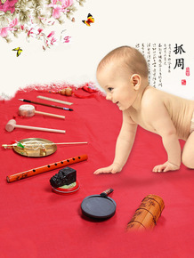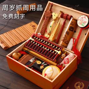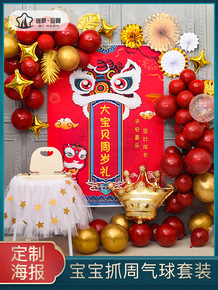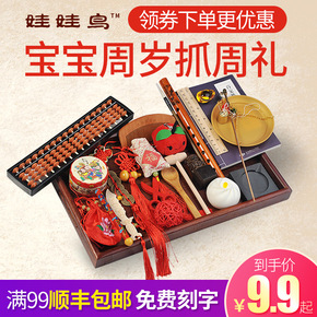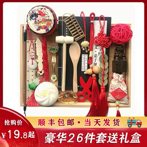 抓周用品套装女宝宝男孩一周岁抓阄礼服礼物小孩生日布...