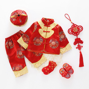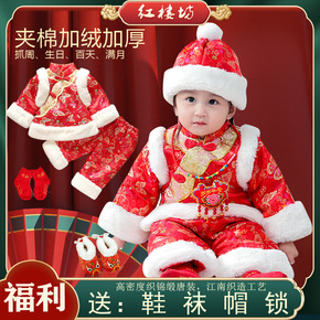 抓周礼服男女宝宝秋冬一周岁婴儿过年喜庆衣服中式国风...