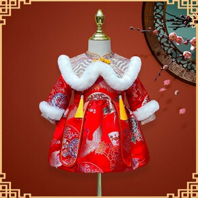 抓周礼服女童宝宝唐装中国风周岁汉服冬季过年拜年服装...
