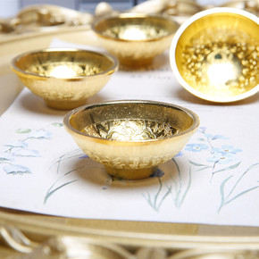 袖珍小碗摆件摆饰碗 镀金碗合金迷你金碗工艺品抓周道...