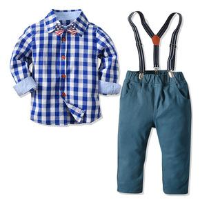 儿童新年抓周礼服套装 男童长袖衬衫背带裤套装四件套...
