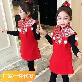 女童旗袍2021冬季新款儿童拜年服加厚小女孩中国风...