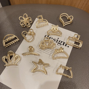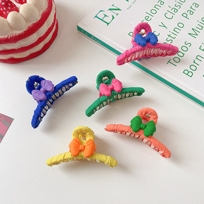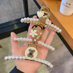 法式花朵珍珠大号鲨鱼夹爱心小熊发夹咖色日韩抓夹气质...