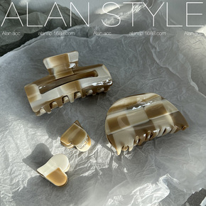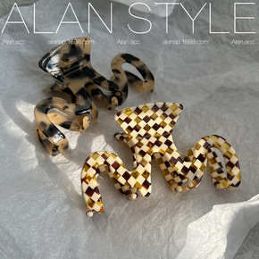 阿斓韩国ins复古醋酸黄棕格M发抓网红博主玳瑁发卡...