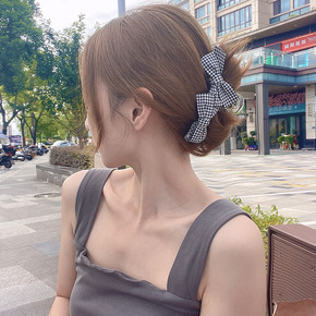 秋季2021年新款优雅格子蝴蝶结发夹后脑勺抓夹女韩...
