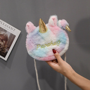 2019秋冬儿童彩虹卡通斜挎包网红新款独角兽毛绒小...