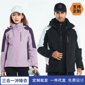 可印LOGO户外冲锋衣男秋冬季女两件套三合一可拆卸...