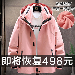 秋冬季户外冲锋衣男女三合一可拆卸两件套加绒加厚防水...