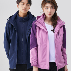 情侣款冲锋衣男女同款二件套三合一防水可拆卸抓绒内胆...