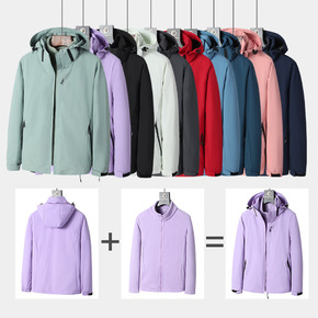新款户外加厚冲锋衣男女士二合一两件套可拆卸防风防水...