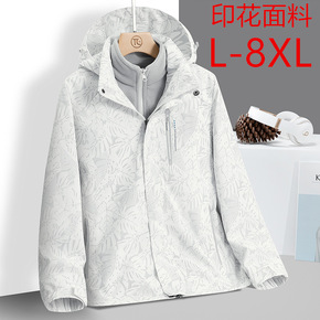 大码加绒夹克外套男胖子加厚冲锋衣三合一加肥加大抓绒...