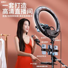 自拍支架直播手机三脚架通用杆补光灯多功能桌面拍照神...