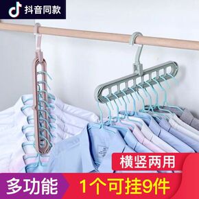 抖音同款多功能衣架九孔挂衣服架衣柜收纳神器折叠魔术...