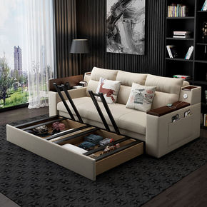 沙发床两用可折叠多功能客厅小户型现代简约实木储物伸...