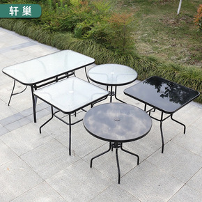 钢化玻璃桌子防锈铁艺长方形大桌子阳台庭院花园桌餐桌...