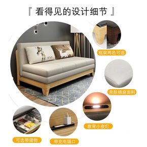 2021年新款沙发床客厅家用可折叠木两用储物小户型...