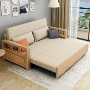 实木沙发床可折叠小户型多功能1.2米推拉坐卧两用1...