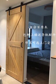 工业实木谷仓门美式移门复古厨房门卫生间隔断门吊轨推...
