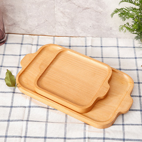 木制双耳朵托盘 小吃盘水果托盘 德国榉木酒店餐盘披...