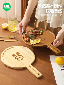 简约实木圆形披萨托盘家用隔热盘烘焙小吃盘西餐烤肉盘...