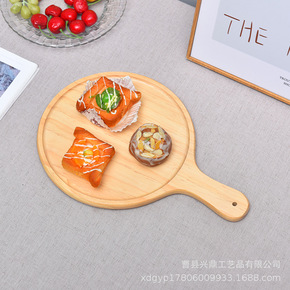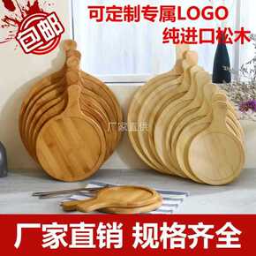 松木8寸9寸披萨木托盘 圆形手柄木质披萨板西餐盘实...