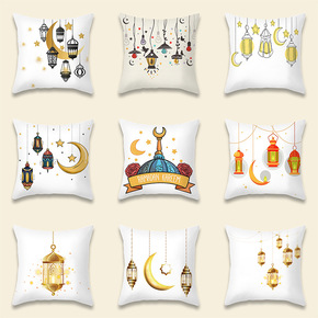 居家抱枕套亚马逊金色月亮桃皮绒印花客厅沙发靠枕套卧...