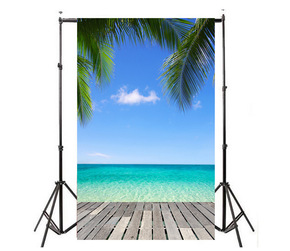 新款海景摄影布椰子树风景3D摄影棚影楼背景布外贸跨...