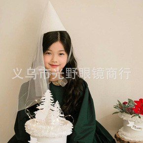 ins风闪粉亮片尖尖网纱公主生日帽满月周岁生日聚会...