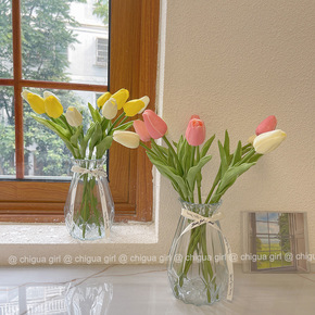 ins仿真花郁金香送花瓶摆件客厅仿真花束拍照花朵道...