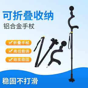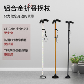 外贸新款日本送礼雅黑 四节折叠拐杖老年防滑铝合金木...