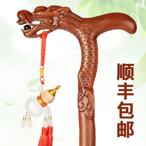 实木拐杖手杖防滑黄金檀龙头拐棍木质绅士圆头文明棍仗...