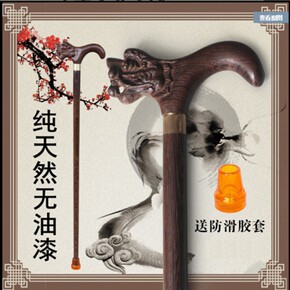老人拐杖实木龙头手杖四脚防滑老年人木头拐棍红木扶手...