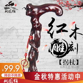 老人拐杖红木红酸枝木质老年人防滑拐棍龙头手杖木头拐...