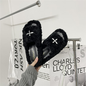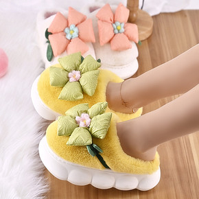 棉拖鞋女冬季时尚花朵可爱厚底家居家外穿包头踩屎感毛...