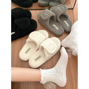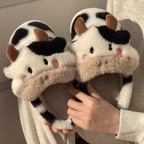 奇丹鞋厂奶牛棉拖鞋女秋冬季居家外穿厚底加绒包跟保暖...