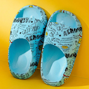 2022新款时尚儿童拖鞋夏涂鸦防滑沙滩中大童厚底室...