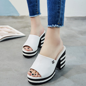 2022新款夏季 真皮女 拖鞋 松糕高跟拖鞋女防滑...