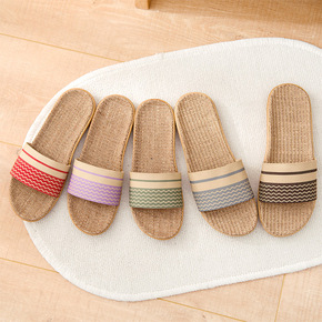 新款家居拖鞋 女士亚麻拖鞋 春夏季防滑室内拖鞋 凉...