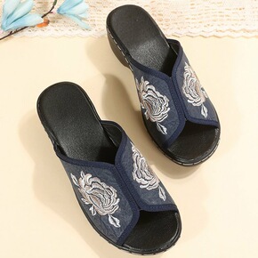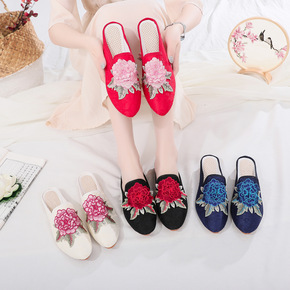 2018新款刺绣穆立体绣花包头半拖鞋凉鞋女夏懒人鞋...